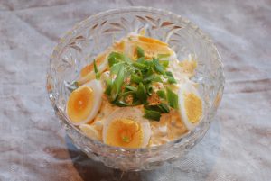 Påsken er over , men det kan jo være fint med et «gult innslag» når vårsola nærmer seg. Dette er et godt pålegg som kan spises på brødskiva i hverdagen eller serveres som en rett på koldtbord for eksempel. Røkelaks og spekeskinke kan være godt tilbehør.