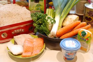 Denne suppa ble til da jeg kom hjem fra hytta og måtte lage middag av det som var i kjøleskap og fryser. Slik er det ofte med suppe; ta det du har. Løk i en eller annen form er uunnværlig og fenikkel smaker godt synes jeg. Denne gangen har jeg ikke bilde av det ferdige resultatet. Jeg håper allikevel at du blir inspirert til å lage din fiskesuppe. Dette brukte jeg til suppa denne gangen: