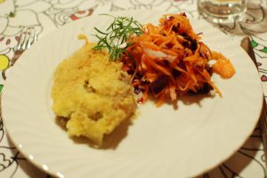 Når jeg lager salat prøver jeg å tenke at det skal være noe søtt (rosiner, honning, epler), surt (sitronsaft, juice, eddik), salt og bittert (rødløk er fast følgesvenn i mine salater) i tillegg til grønnsakene
