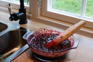 Har du blåbær på hytta for eksempel er det bare å plukke og du får raskt et nydelig syltetøy til vafler og pannekaker. Dette ga meg syltetøy på 1-2-3 (en av de utflyttede plukket bærene):